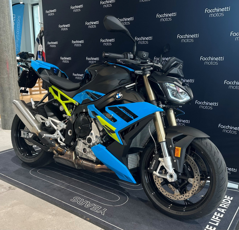 🏍️ Facchinetti Motos, succursale BMW Motorrad à Neuchâtel, vous propose cette exceptionnelle BMW S1000R Bluefire/Mugiallo Yellow, une moto haute performance taillée pour les passionnés de vitesse et de précision.