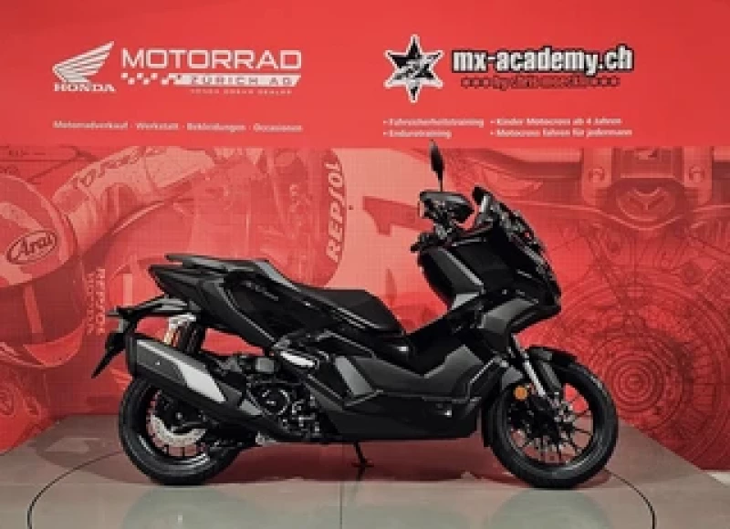 Die Honda ADV350 vereint das komfortable Fahrgefühl eines Grossrollers mit dem robusten Look und der Vielseitigkeit eines Adventure-Bikes. Mit ihrem kraftvollen 330ccm-Motor, dem hohen Windschild, dem bequemen Fahrwerk und dem grosszügigen Stauraum unter der Sitzbank ist sie ideal für den täglichen Stadtverkehr und Wochenendausflüge abseits der Strasse. Dieser ADV ist in einer schwarzen Farbe, aber wir haben auch weitere Farben in unserem Lager