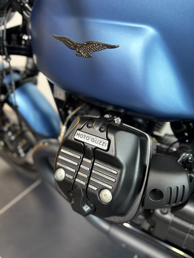 Ausstattung ab Werk: ABS | LED-Beleuchtung vorne & hinten | LCD-Cockpit | Traktionskontrolle | Scheibenbremsen v/h | 6-Gang-Getriebe | Seitenständer | Komfortsitzbank | 17" Hinterrad / 18" Vorderrad | USB-Anschluss | Retro-Tankdesign Blu Profondo | Schwarze Auspuffanlage | Stahlrohrrahmen | Luftgekühlter V-2 Motor