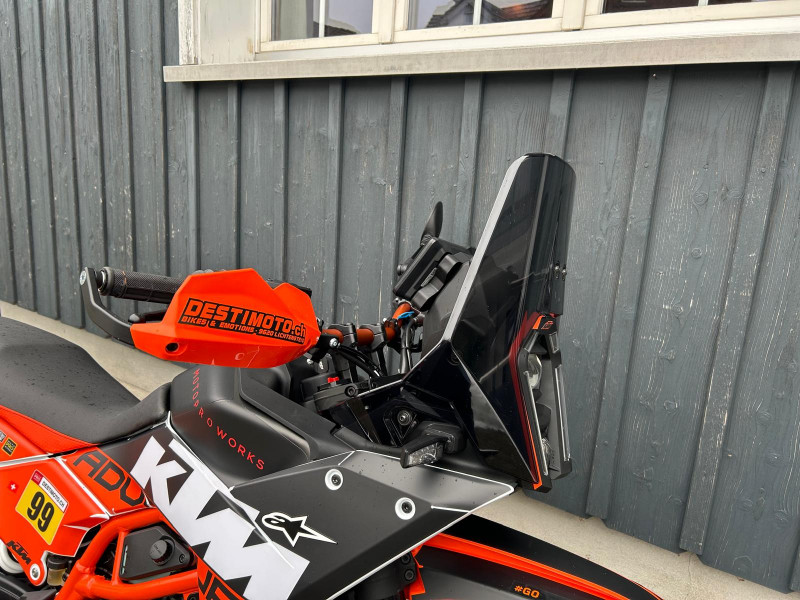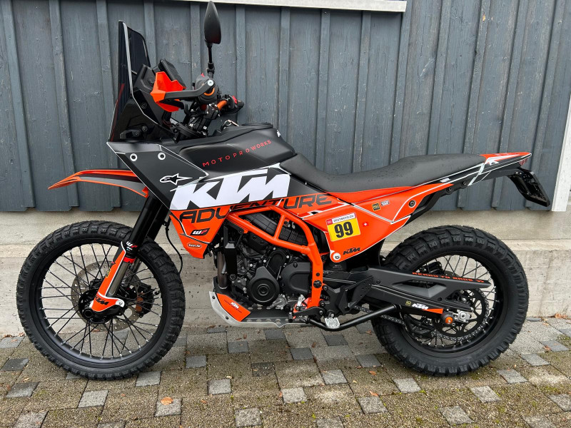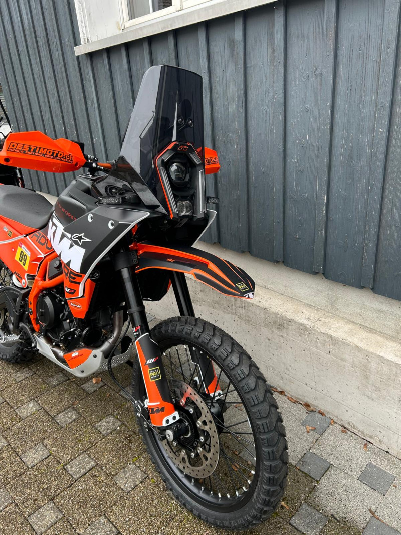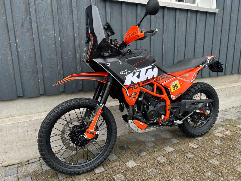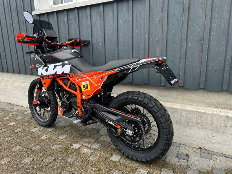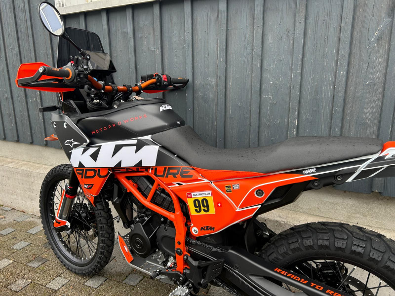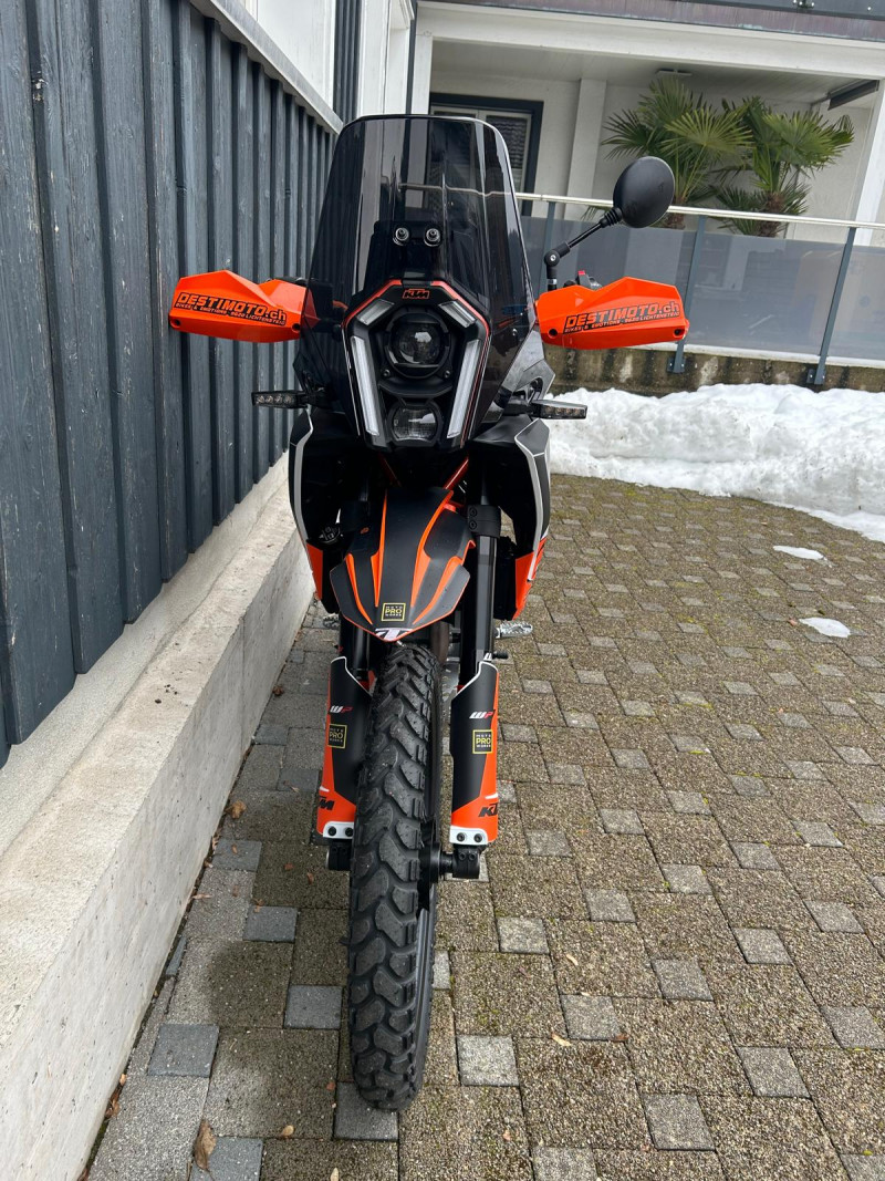 Inklusive folgendem Zubehör im Wert von Fr. 1’500.-: Spezial Dekor, Powerparts-Lenker und Lenkererhöhungen von Touratech, Handschützer, Klapprückspiegel, Griffgummis, Windschutzscheibe getönt, Displayschutzfolie, Rahmenschutz und Heckumbau mit LED-Blinker.