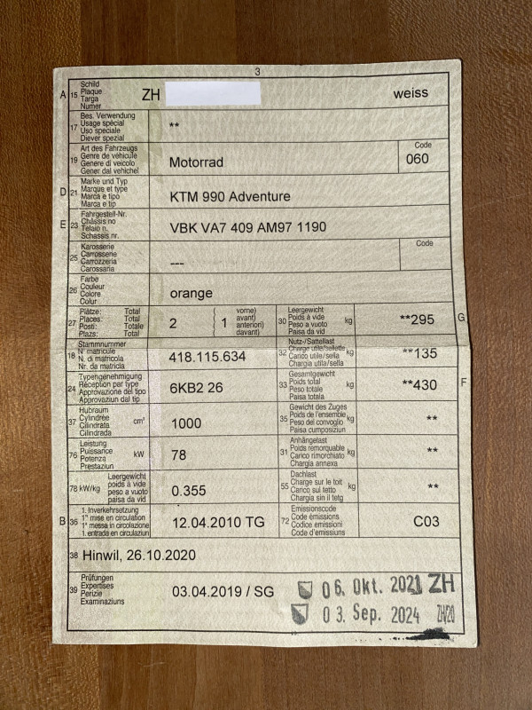 - Ein Satz neue Bremsbeläge vorne (die eingebauten sind noch i.o.).