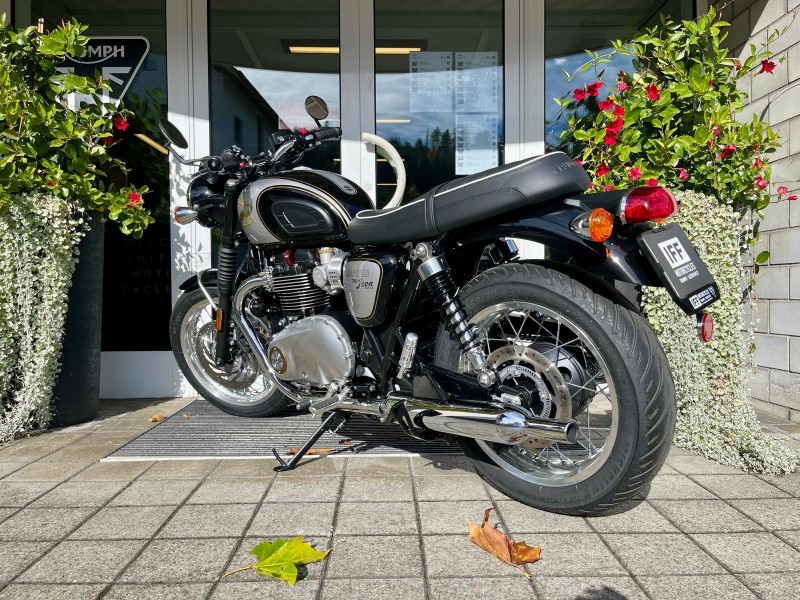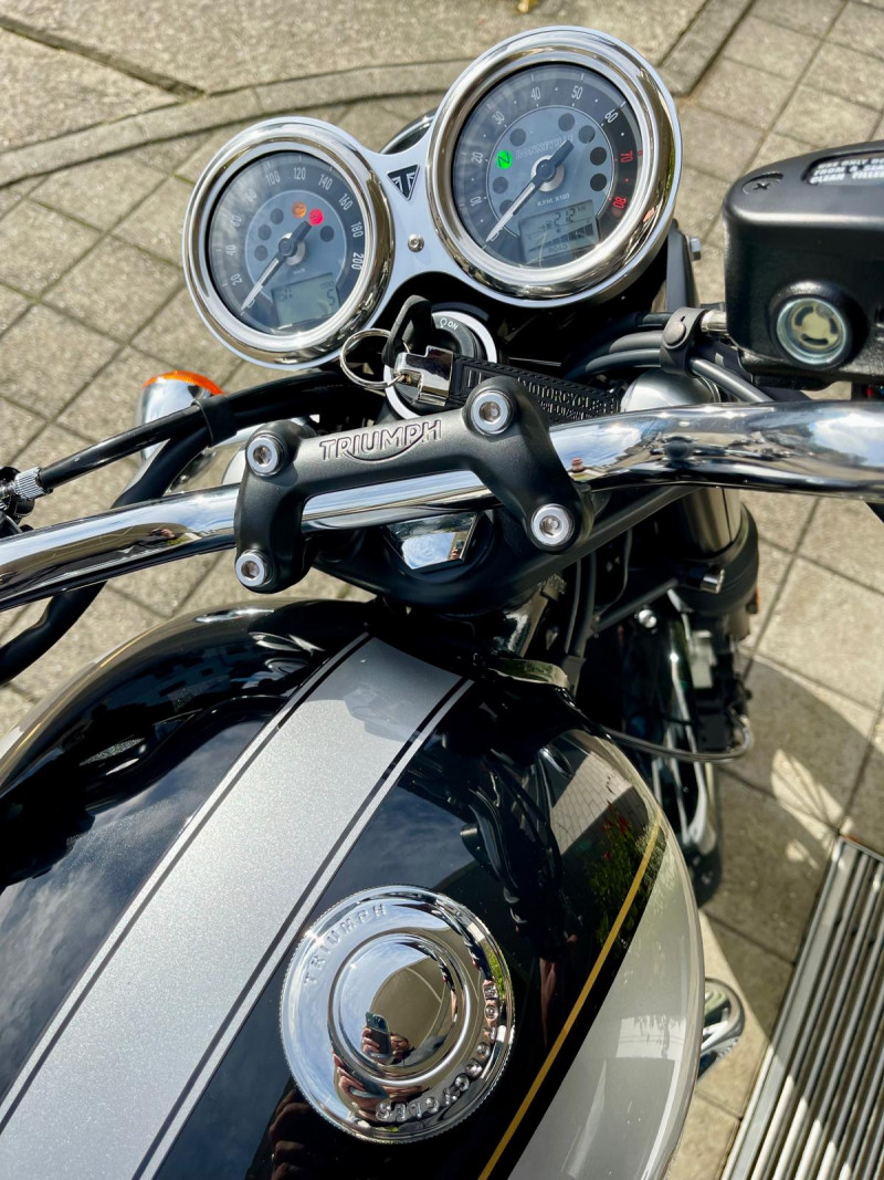 Diese Sonderedition besticht durch ihre exklusive Lackierung mit handgemalten Filetstreifen und klassische Triumph-Schriftzüge. Unser Fahrzeug ist zusätzlich mit Hauptständer, Griffheizung und Lenkerendspiegeln ausgestattet – ein stilvolles Detail, das perfekt zum Charakter der Maschine passt.